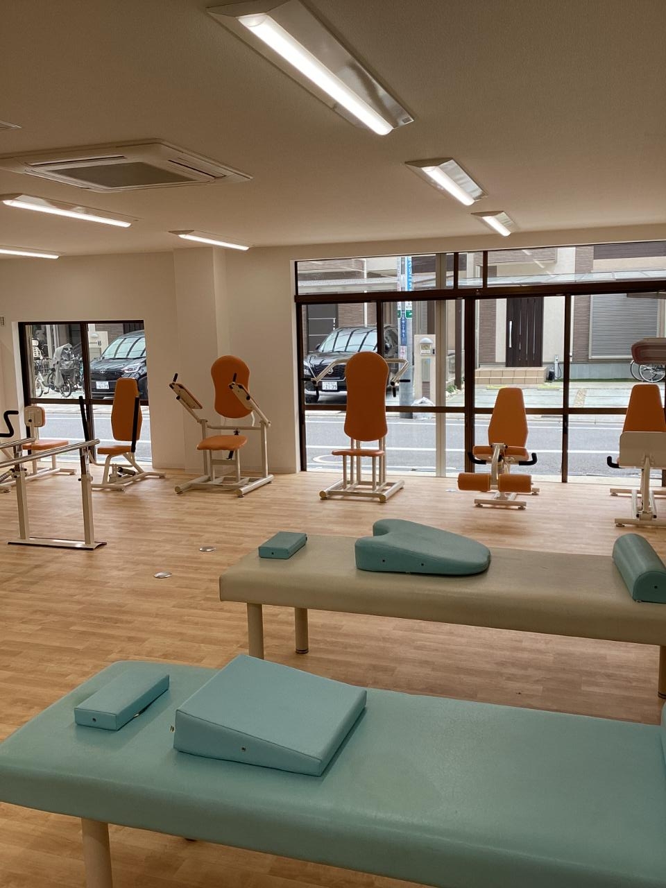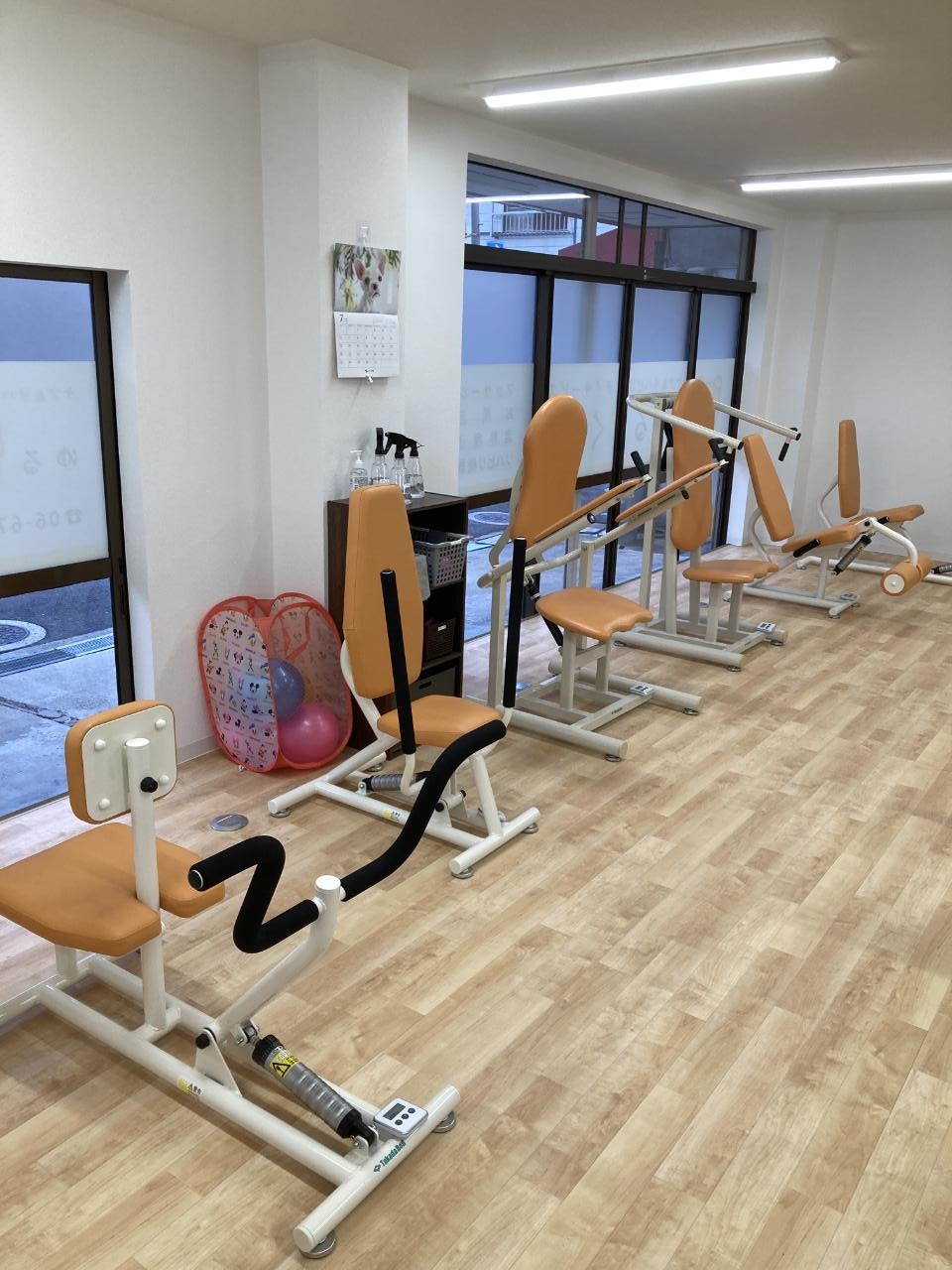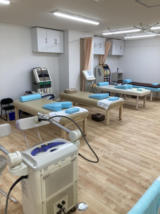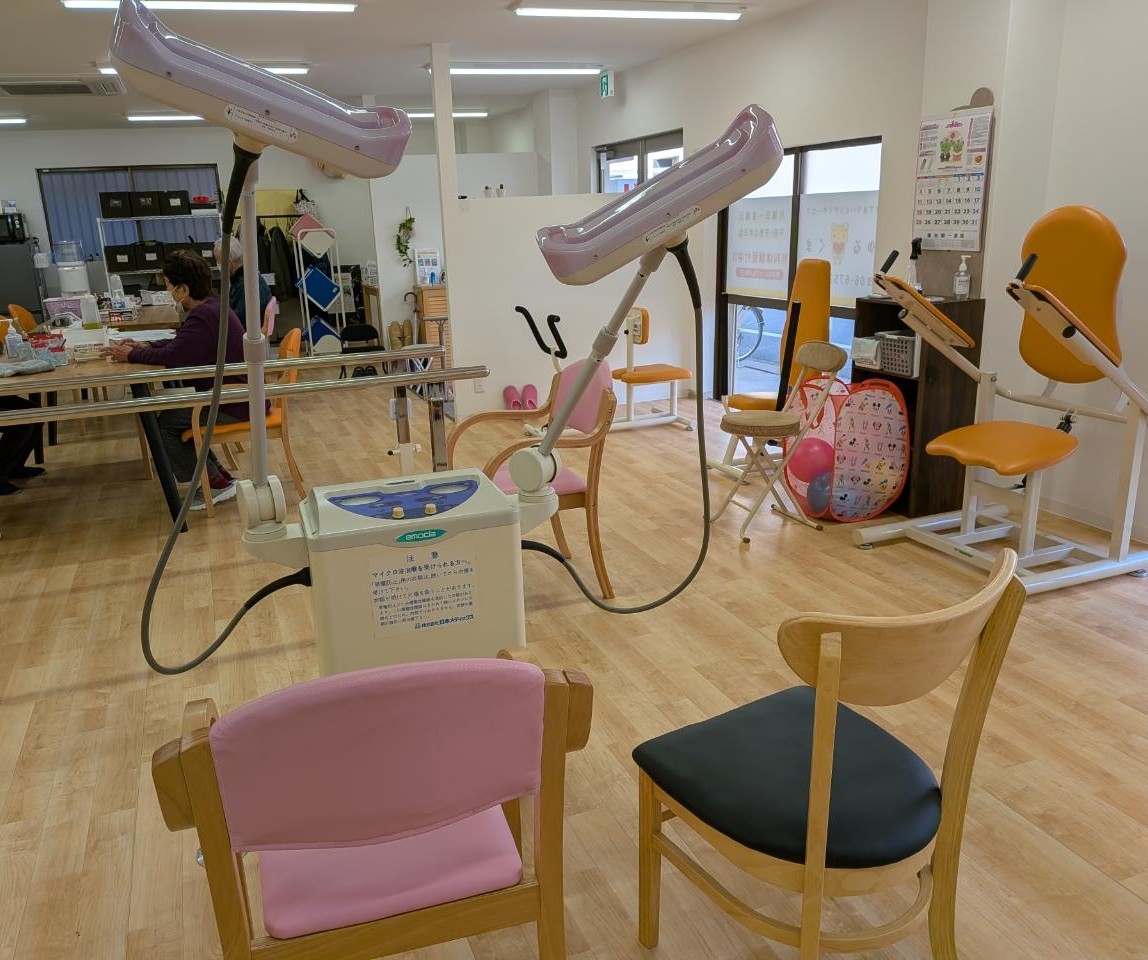 デイサービスゆるくまではリハビリや施術を安心して行えるよう、各種運動機器や治療機器、休憩用ベッド、バイタル測定機器などを整えています。ご利用者様の体調や目的に応じて、無理のない環境でお過ごしいただけるよう配慮しています。